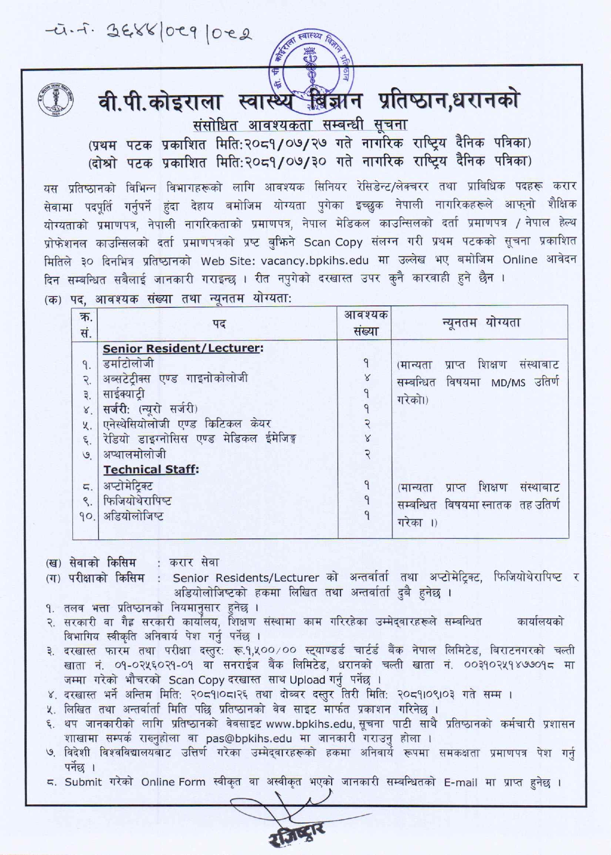 Description: Advertisement for the Senior Resident/Lecturer position published in Nagarik Daily on 27th of Kartik, 2081.